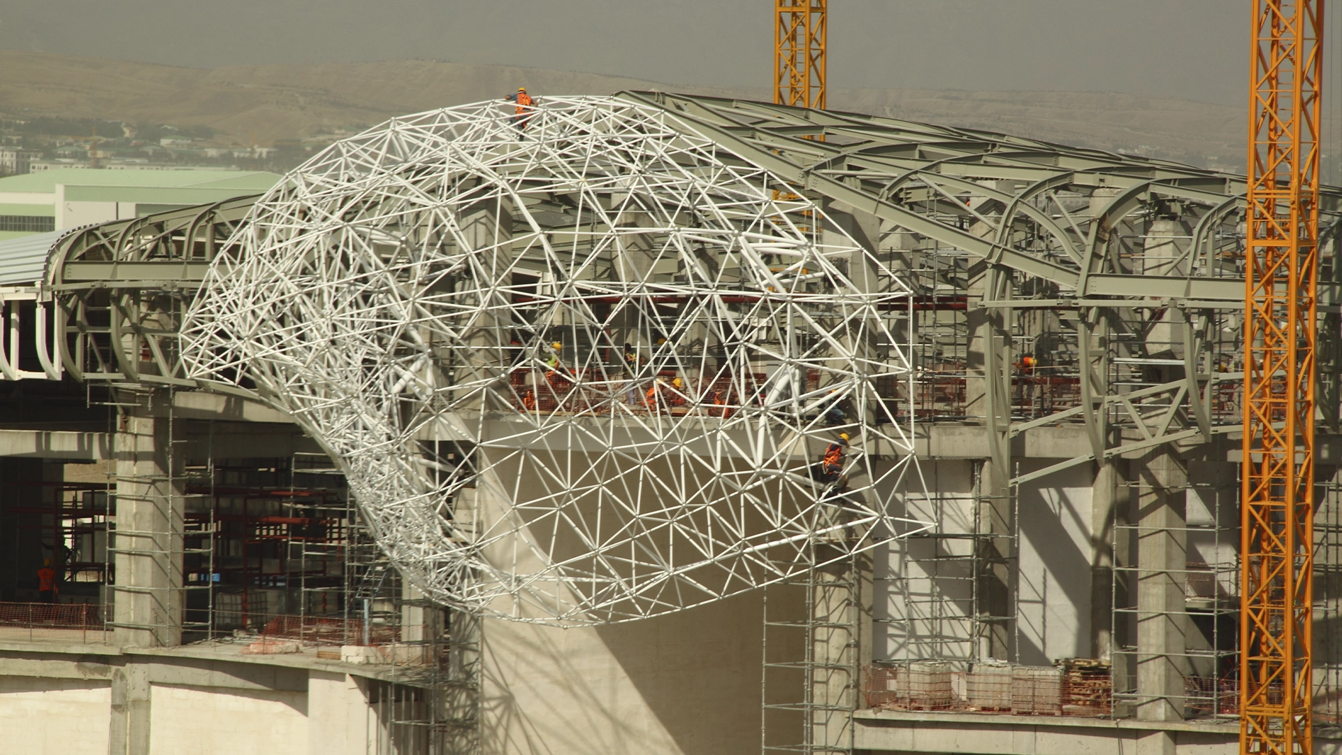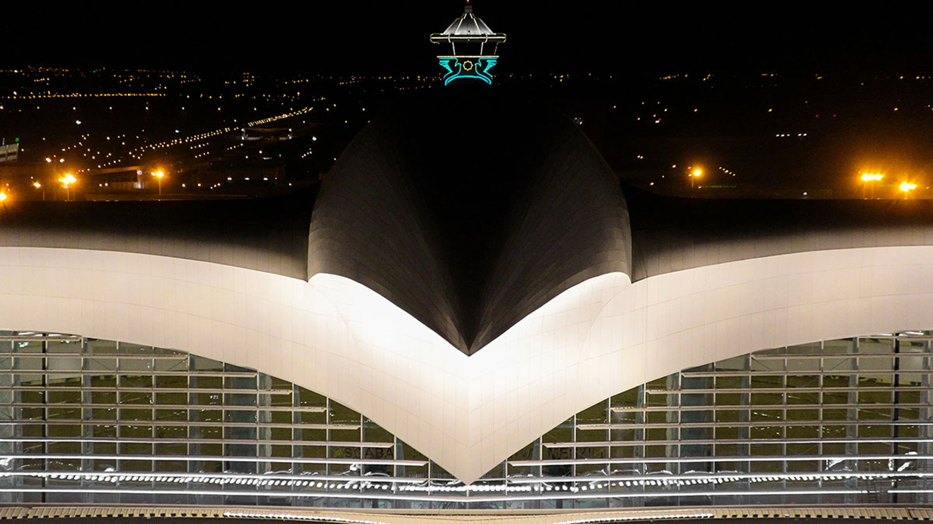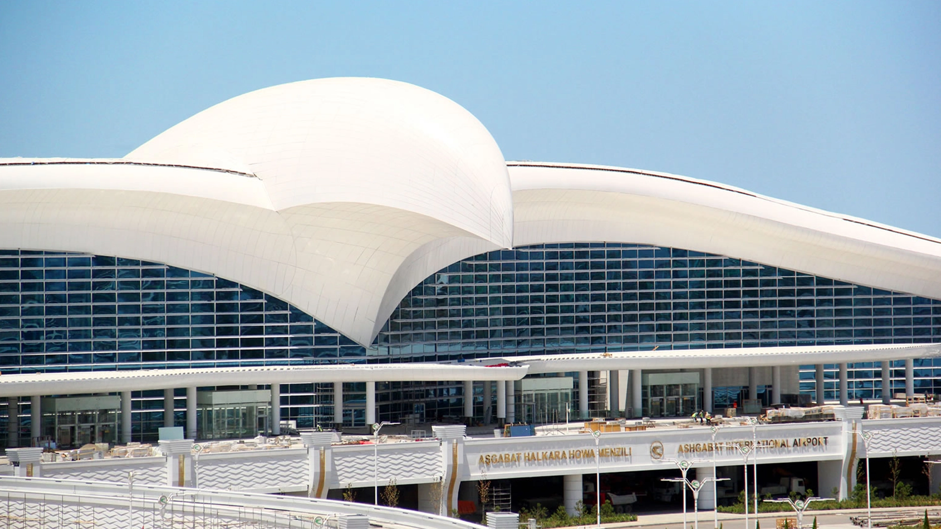 The international airport in the capital of Turkmenistan has its symbolical shape on the center of the airport and its wings from one end of the building to another.